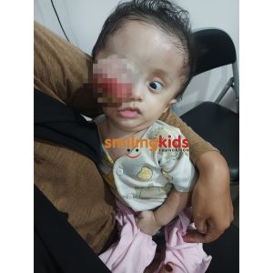 MUAZ, adalah bayi laki laki yang saat ini berusia 9 bulan. muaz terlahir dengan bola mata kanan membesar dan menonjol keluar. semakin bertambahnya usia bola matanya semakin membesar begitu juga dengan kepalanya yang ikut membesar juga. menurut hasil pemeriksaan medis muaz di diagnosa rhabdomiosarcoma atau yang lebih sering di sebut dengan kanker jaringan lunak / otot. sejauh ini muaz sudah banyak menjalani pengobatan baik di medan ataupun di RS. Cicendo bandung namun belummendapatkan hasil. selasa 02 januari 2024 Muaz mulai bergabung dengan Smiling Kids Foundation dan akan memulai pengobatannya kembali