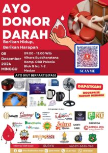 Mari sahabat Dhamma semuanya, kita berbagi dan peduli terhadap sesama, sekaligus menyehatkan jasmani. Salah satunya melalui sumbangsih dalam kegiatan DONOR DARAH