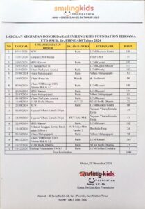 Laporan Kegiatan Donor Darah Smiling Kids Foundation tahun 2024