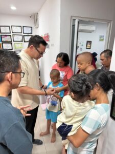 turutmas ari wibowo memberikan motivasi serta semangat kepada anak anak pejuang kanker beserta orang tua pendamping dan di akhiri dengan foto bersama , berdoa dan penyerahan donasi.
