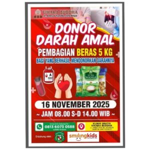Donor darah itu mudah dan banyak banget manfaatnya, 16 november 2025 Smiling Kids Foundation kembali melaksanakan Kegiatan Donor darah yang bekerja sama dengan Vihara Budha Binjai dan UTD RS. Pirngadi.